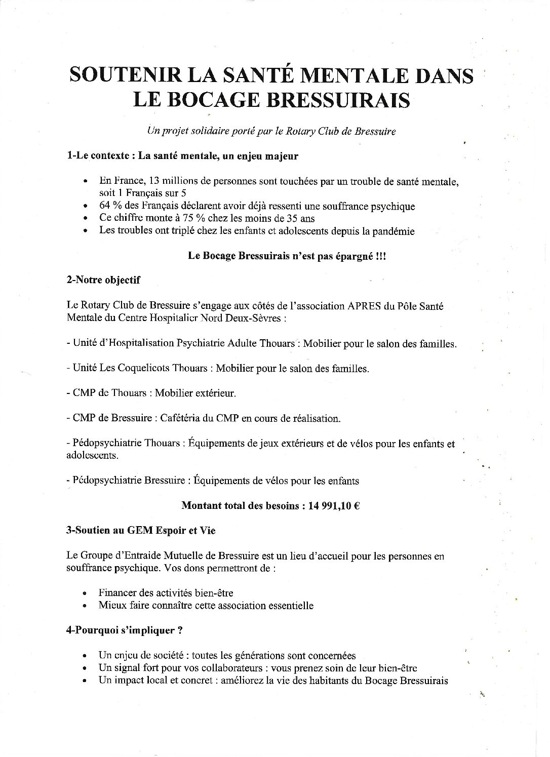 Un projet solidaire porté par le Rotary Club Bressuire :